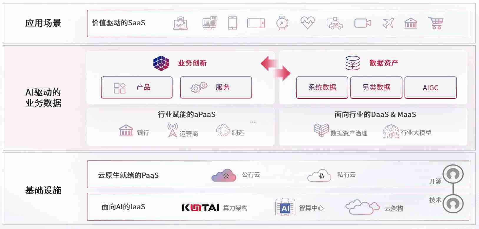 数字时代,,,围绕企业数字化转型的关键要素,,LETOU数码开创性的提出数云融合战略和技术体系框架,,,着力在云原生、、、、数字原生、、、、AI原生和信创产业上架构产品和服务能力,,为处在不同数字化转型阶段的快消零售、、、汽车、、、、金融、、、医疗、、政企、、、、教育、、运营商等行业客户提供泛在的敏捷IT能力和融合的数据驱动能力,,,构建跨界融合创新的数字业务场景和新业务模式,,,助力企业级客户建立面向未来的核心能力和竞争优势,,,全面推动社会的数字化、、智能化转型升级。。。